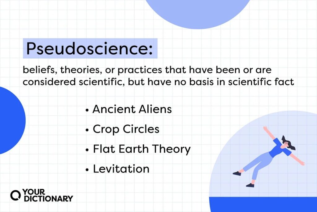 Pseudoscience includes beliefs, theories, or practices that have been or are considered scientific, but have no basis in scientific fact. This could mean they were disproved scientifically, can’t be tested scientifically, or lack evidence to support them. The term generally has a negative connotation. When used, someone’s insinuating the topic isn’t based on scientific findings and is, therefore, lacking in truth.